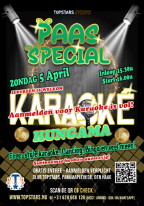Bekijk de aftermovie op onze facebook pagina. Topstars Events presents: KARAOKE HUNGAMA – Paas Special Zondag 5 april bij Club